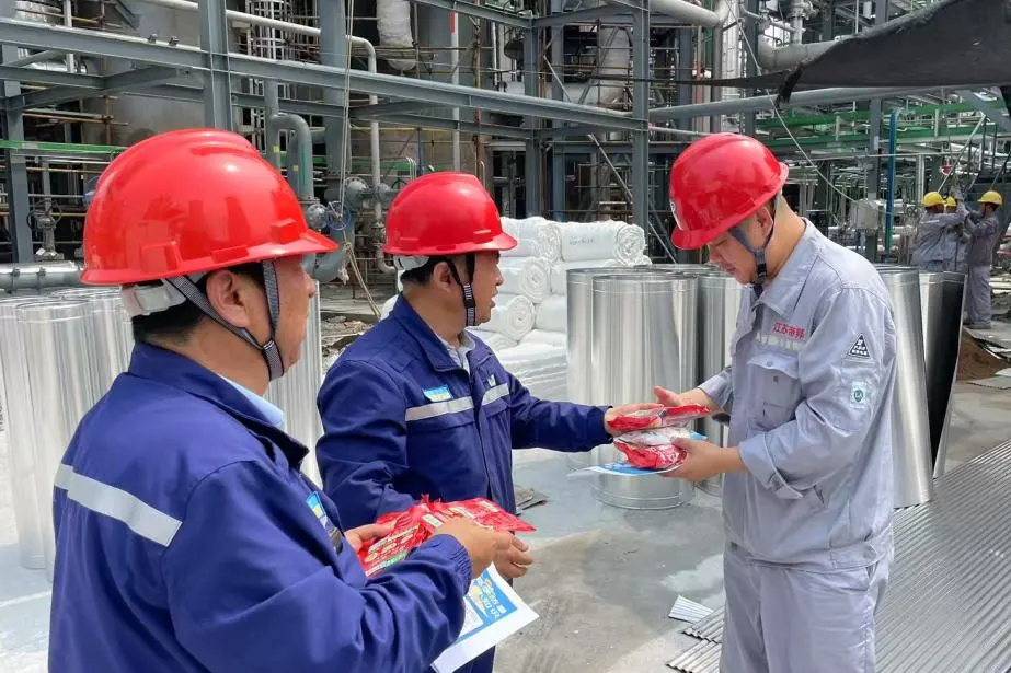 物流與裝卸中心黨支部特別貼心,在東西區(qū)灌裝站和停車場分別放了 4 臺冰柜,里面滿滿當(dāng)當(dāng)全是冰鎮(zhèn)水,就像一個個 “清涼小站”。不光這些,裝卸現(xiàn)場還常備能補充能量的糖鹽水,以及應(yīng)對突發(fā)狀況的防暑藥品,就為了讓在烈日下忙碌的裝卸人員隨時能享受到這份清爽,干活兒更舒心。