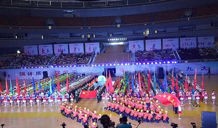 伴隨著振奮人心的《運動員進行曲》,由百余名健兒組成的運動員方隊踏著整齊的步伐,英姿颯爽意氣風(fēng)發(fā)地進入運動場。