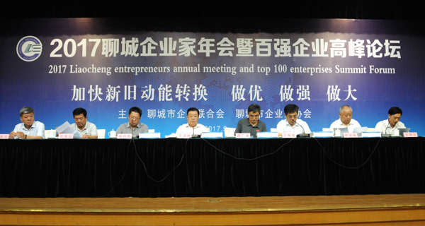 9月20日上午,2017年聊城市企業(yè)家年會(huì)暨百?gòu)?qiáng)企業(yè)高峰論壇在東昌賓館大禮堂召開。