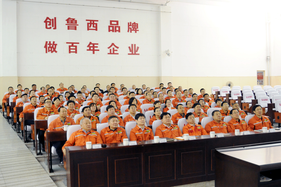 圖為魯西集團(tuán)黨委組織各單位黨員干部觀看現(xiàn)場。