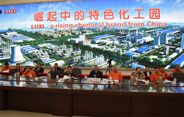 領(lǐng)導(dǎo)一行首先參觀了園區(qū)生產(chǎn)裝置、項目建設(shè)現(xiàn)場和實訓(xùn)科研基地,聽取了近年來集團(tuán)在新舊動能轉(zhuǎn)換、化工裝備制造業(yè)壯大發(fā)展、員工培訓(xùn)教育、智慧化工園區(qū)建設(shè)等方面的情況介紹,并深入到尼龍6產(chǎn)品庫房、聚碳酸酯包裝廠房進(jìn)行了實地參觀,高局長對集團(tuán)逐步實現(xiàn)由傳統(tǒng)化肥向基礎(chǔ)化工,由基礎(chǔ)化工向化工新材料的轉(zhuǎn)型,以及“一體化、集約化、園區(qū)化、智能化”的發(fā)展模式和取得的成績給予了充分肯定。