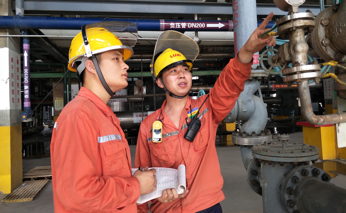 裝置老師傅向新進(jìn)員工耐心講解設(shè)備構(gòu)造、原理等知識(shí)