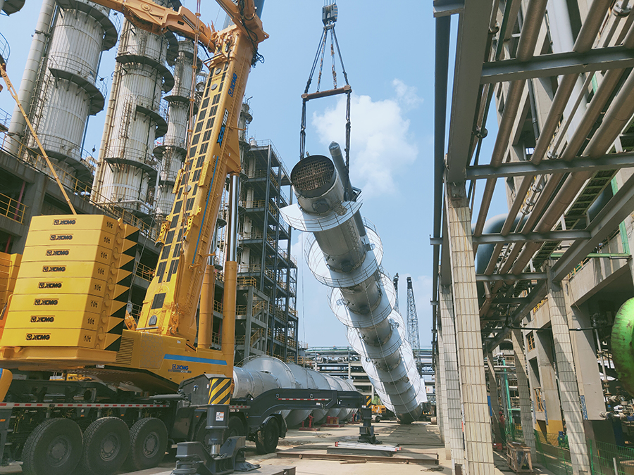 比如甲胺項目的14臺高塔,直徑大、高度高、保溫厚,現(xiàn)場場地狹小,設備倒運及吊裝難度較大,且脫氨塔、分離塔、脫水塔、甲醇回收塔必須分段吊裝,加大了施工難度。為保障四臺高塔順利吊裝就位,事業(yè)部上下齊心,堅持“一盤棋”思想,將四臺高塔每一段平臺爬梯及保溫任務分配至車間及安裝隊,編制詳細施工、倒運、吊裝及對口計劃。全過程黨員干部現(xiàn)場帶領員工加班加點,保證各環(huán)節(jié)無縫銜接。最終順利完成甲胺項目高塔設備一體化、模塊化吊裝,為后續(xù)設備和管道安裝奠定了基礎,鼓舞了士氣。