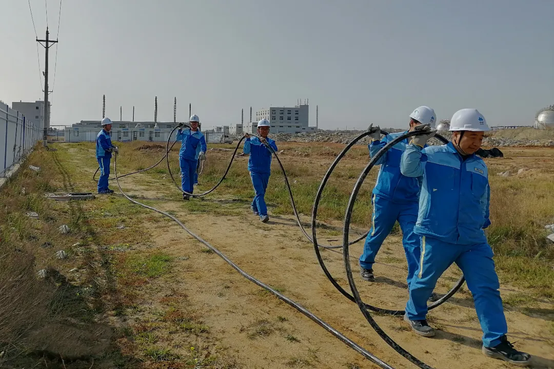 上下同欲者勝。項(xiàng)目部針對路途遠(yuǎn)、供貨慢的現(xiàn)狀,經(jīng)過價(jià)格對比協(xié)調(diào)泉州石化的電纜運(yùn)到現(xiàn)場。沒有施工人員,黨員干部率先垂范齊上陣,肩扛手拉起比胳膊還粗的電纜自行敷設(shè),他們在難度最大的電纜拐彎處,一邊喊著口號(hào)一邊使勁往前拽,人人臉漲的通紅,脖子上暴起青筋,空氣中回蕩著號(hào)子聲,最終在汗水與吆喝聲中敷設(shè)好了一條保障供給的“動(dòng)力脈絡(luò)”。