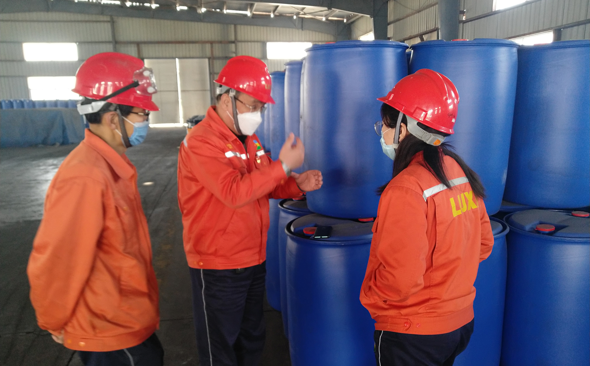 3月16日,國(guó)際貿(mào)易公司部長(zhǎng)扈瑞祥主動(dòng)到?;钒b庫(kù)房,查看首次使用塑料桶進(jìn)行灌裝甲酸的情況,并對(duì)集團(tuán)LOGO的運(yùn)用提出改進(jìn)建議。這是針對(duì)遠(yuǎn)洋區(qū)域客戶反饋,對(duì)前期出口某產(chǎn)品使用的鋼制桶改為PE桶包裝進(jìn)行了改進(jìn),雖成本上稍微增加,但可以大大降低產(chǎn)品被二次污染的概率,提升我們的產(chǎn)品質(zhì)量全流程管控,做好客戶的終端服務(wù)。另?yè)?jù)扈瑞祥部長(zhǎng)介紹:“甲酸作為直接用于牧草收割及青貯的產(chǎn)品,為避免甲酸液體對(duì)人身傷害事故的發(fā)生,采取直接添加食品級(jí)“胭脂紅”粉末的方式來(lái)增加辨識(shí)度。為避免粉末散落現(xiàn)象,國(guó)際貿(mào)易公司積極改變粉末添加方式,新訂單發(fā)運(yùn)前,提前與客戶及甲酸灌裝人員溝通,將粉末按一定比例配成溶液加入包裝桶內(nèi)。同時(shí),添加節(jié)點(diǎn)改在拆卸包裝桶防護(hù)膜前添加,以防止添加過(guò)程中再污染包裝桶”。改進(jìn)后取得較好效果,并得到客戶的高度認(rèn)可。