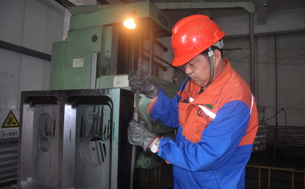2015年,劉培江成為正式黨員的第三個(gè)年頭,他臨危受命被公司委任為石墨生產(chǎn)線負(fù)責(zé)人,主持石墨換熱器制作研發(fā)工作。為盡快完成企業(yè)交給的任務(wù),他身先士卒,以廠為家,幾乎24小時(shí)都盯在生產(chǎn)線上,實(shí)在太累了就在值班室的躺椅上靠一會(huì)。石墨換熱器加工、總裝裝配過(guò)程中,石墨塊密封性能結(jié)構(gòu)裝配是最難把握的,稍有一點(diǎn)失誤都會(huì)導(dǎo)致石墨設(shè)備的整體壓力試驗(yàn)不達(dá)標(biāo),影響組裝質(zhì)量。大家試驗(yàn)了很多方法都不能很好的解決這個(gè)問(wèn)題,整個(gè)攻關(guān)團(tuán)隊(duì)士氣低迷。