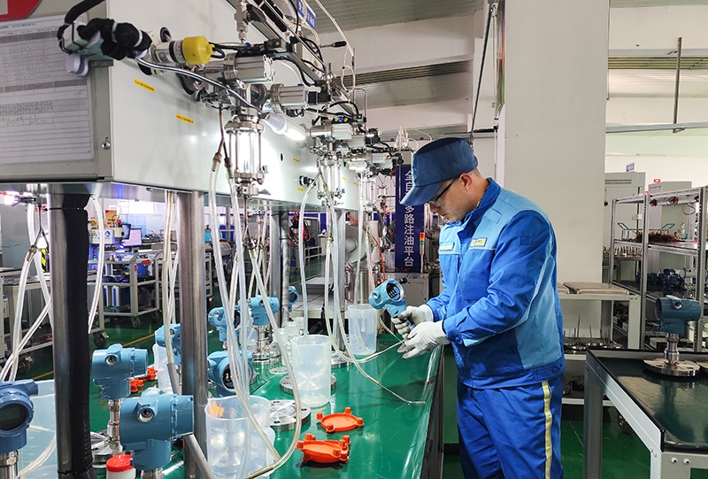 注油工序將“精打細算”發(fā)揮的淋漓盡致。硅油作為制作法蘭變送器的必需品,在注油方式未改進前,每一臺變送器注油量的多少,只能根據人為的經驗去判斷,沒有確切的使用標準,這就造成了制作前對硅油進行加熱處理的用量很難把控。制作完成后剩余硅油含有雜質,不能二次使用,長此以往,造成廢舊硅油的堆積。為解決這一瓶頸,注油臺增加抽濾瓶裝置,對剩余硅油利用抽真空方式進行雜質過濾,廢舊硅油得到了最大限度的利用。同時改進注油方式,根據毛細管的長度以及硅油密度計算出準確的注油量。3米、5米、8米……各類型毛細管法蘭變送器的注油量得到了精準把控,經過改進后,原來每月20公斤硅油的使用量,降低到現(xiàn)在的10公斤,并且利用率至少提高了50%。