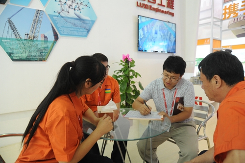 在集團(tuán)展位現(xiàn)場,工作人員熱情接待來自國內(nèi)外的參展客商,詳盡介紹了集團(tuán)的發(fā)展概況和集團(tuán)設(shè)計研發(fā)、裝備制造、工程建設(shè)等情況,溝通對方關(guān)注的問題,并和對集團(tuán)產(chǎn)業(yè)板塊感興趣的客戶進(jìn)行深入的溝通洽談。