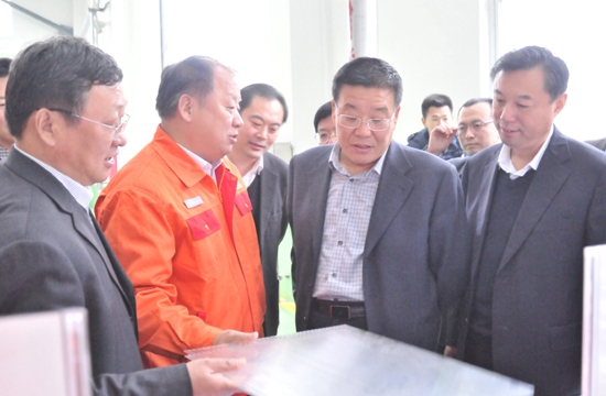 領導一行在聚碳酸酯裝置參觀企業(yè)相關產品