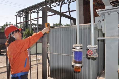 圖為:電氣人員對(duì)主變壓器的運(yùn)行溫度進(jìn)行測(cè)量