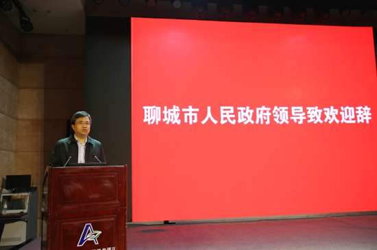 圖為聊城市委副書記、市長(zhǎng)宋軍繼致歡迎辭。