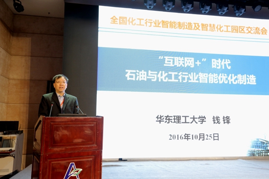 會(huì)上,華東理工大學(xué)副校長(zhǎng)、中國(guó)工程院院士錢鋒作了“互聯(lián)網(wǎng)+”時(shí)代石油化工行業(yè)智能優(yōu)化制造的報(bào)告。