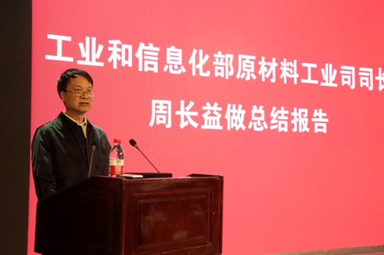 圖為工業(yè)和信息化部原材料司司長(zhǎng)周長(zhǎng)益作總結(jié)報(bào)告。
