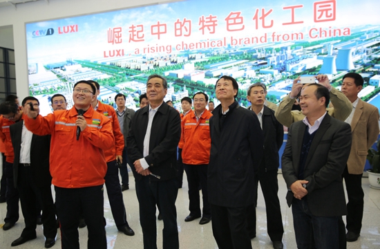 圖為參會(huì)領(lǐng)導(dǎo)和與會(huì)代表參觀魯西集團(tuán)化工新材料產(chǎn)業(yè)園。