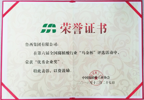 在會議同期舉行的中國腐植酸工業(yè)協(xié)會年度表彰會上,魯西集團有限公司憑借多年來大力開發(fā)、推廣腐植酸系列復(fù)合肥料,為實現(xiàn)傳統(tǒng)肥料產(chǎn)業(yè)升級做出的貢獻,榮獲第六屆全國腐植酸行業(yè)“烏金杯”優(yōu)秀企業(yè)獎榮譽稱號。