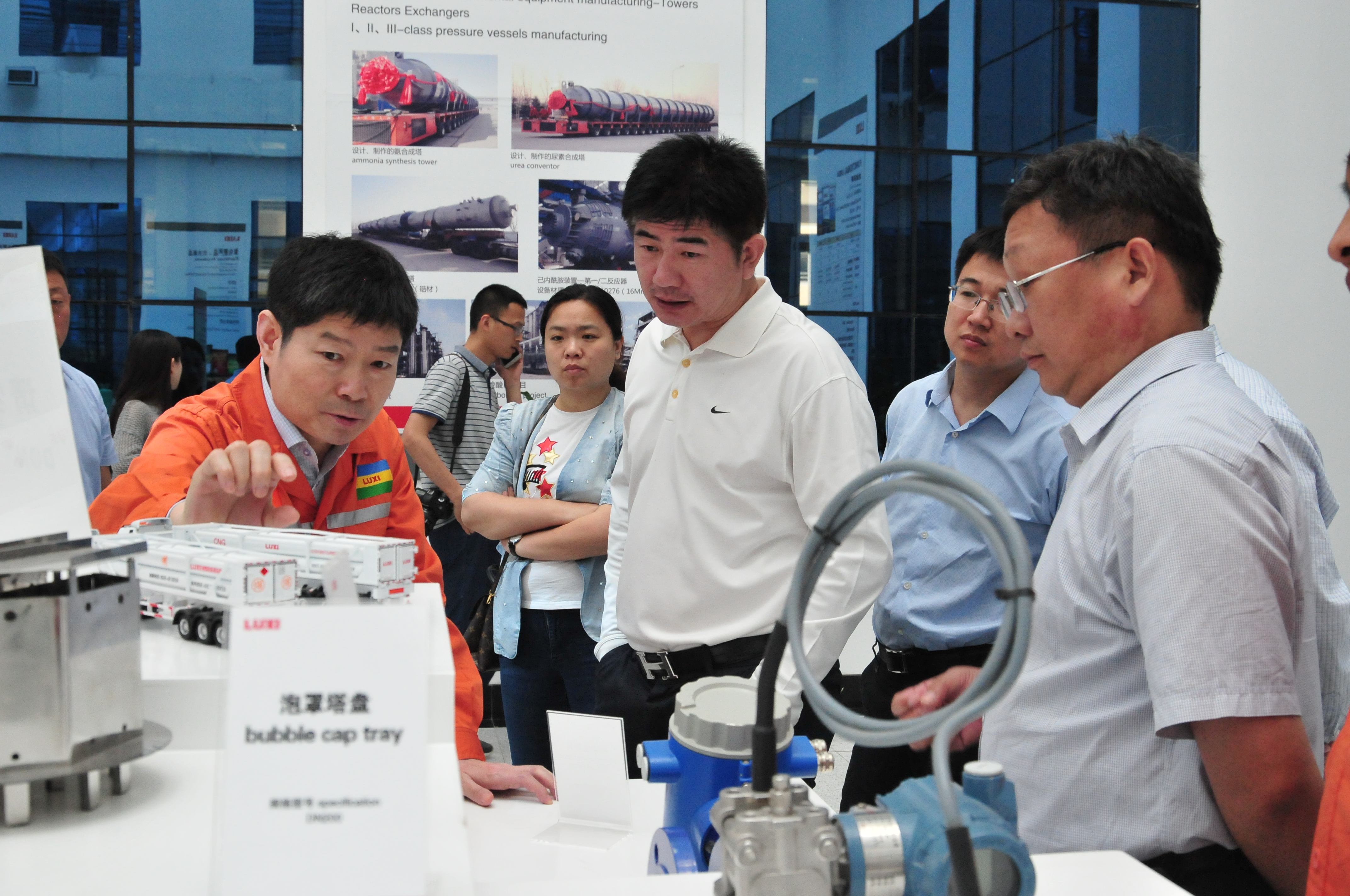 馮會(huì)長(zhǎng)一行參觀了園區(qū)生產(chǎn)裝置、項(xiàng)目建設(shè)現(xiàn)場(chǎng)以及技術(shù)中心大樓,在參觀過程中重點(diǎn)了解了實(shí)訓(xùn)基地的利用、工程實(shí)驗(yàn)室相關(guān)工作的開展、運(yùn)行指揮中心的運(yùn)行及集團(tuán)產(chǎn)業(yè)板塊情況等。參觀結(jié)束后雙方在接待中心會(huì)議室進(jìn)行了簡(jiǎn)短座談。