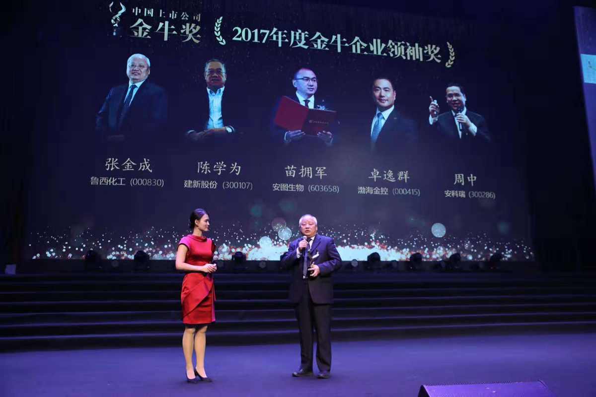 11月15日,由中國(guó)證券報(bào)主辦的第二十屆中國(guó)上市公司金牛獎(jiǎng)?lì)C獎(jiǎng)盛典在四川成都舉辦。魯西化工集團(tuán)董事長(zhǎng)張金成榮獲“中國(guó)上市公司金牛企業(yè)領(lǐng)袖獎(jiǎng)”,并作為代表做了規(guī)范、堅(jiān)守和創(chuàng)新的獲獎(jiǎng)感言。