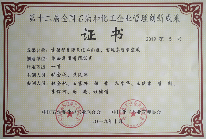大會發(fā)布了管理創(chuàng)新成果獎105項,其中一等獎33項、二等獎53項、三等獎19項。魯西集團申報的“建設(shè)智慧綠色化工園區(qū),實現(xiàn)高質(zhì)量發(fā)展”被評為管理創(chuàng)新成果一等獎。