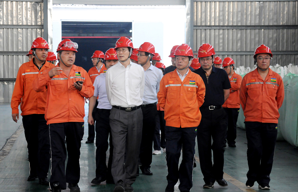 領(lǐng)導(dǎo)一行先后參觀了園區(qū)重型裝備、應(yīng)急救援中心、尼龍6和聚碳酸酯包裝現(xiàn)場、廢水零排放、固廢處置現(xiàn)場、催化劑生產(chǎn)裝置、技術(shù)中心大樓和展廳。