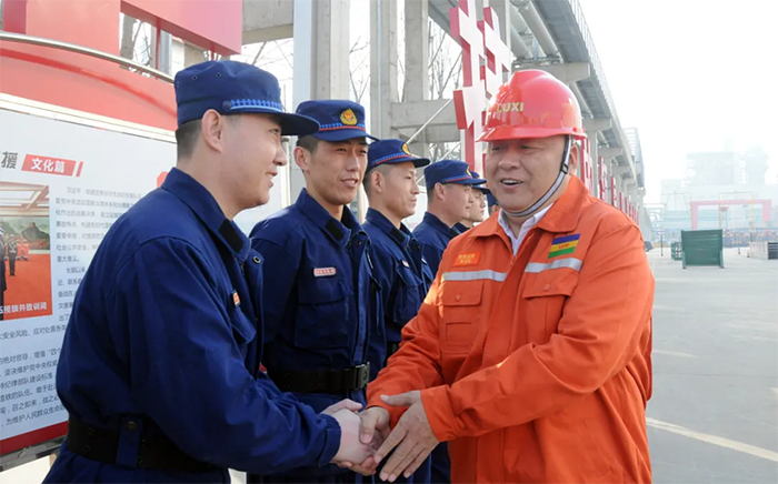 在一號門崗,領(lǐng)導親切的和保衛(wèi)人員握手拜年,并強調(diào):門崗既是守護企業(yè)的關(guān)鍵崗位,又是體現(xiàn)企業(yè)高質(zhì)量服務(wù)水平的窗口,在疫情防控常態(tài)化的形勢下,既要做到嚴格管控,又要做到溫暖貼心服務(wù)。