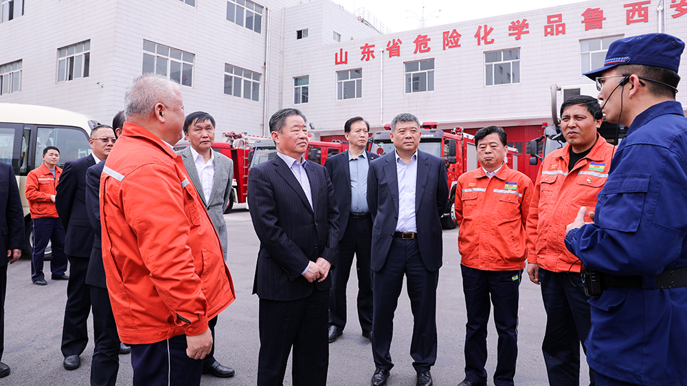 在應急救援中心,寧總觀看了應急救援隊員們的體能操練,詳細了解魯西集團應急救援的設施配備、培訓和外部救援情況,當聽到今年一季度對外接警處置18次、園區(qū)內接警0次時,他連聲夸贊應急隊員們訓練得好、培訓得好、為維護當?shù)厣鐣环狡桨沧鞒鲐暙I。