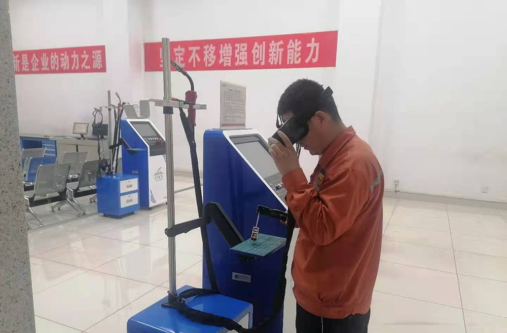 5月23日,在魯西集團實訓中心的焊接實訓區(qū),看到兩位員工正戴著VR眼鏡,手持自動焊槍,專注的在焊接試板上進行焊接練習。在這里根本看不到實景焊接中焊花飛濺的景象。培訓負責人介紹說:“這是焊接模擬仿真實訓區(qū),該系統(tǒng)是新一代環(huán)保、節(jié)能、通用型焊接操作技能實訓與考核平臺。練習過程中,不使用焊條,原料0消耗;不產(chǎn)生煙氣,空氣0污染。適用于焊接零基礎的員工進行培訓。能夠滿足員工焊條電弧焊、氬弧焊、CO2氣體保護焊、機器人編程教學操作基礎知識培訓及安全考核模擬?!?
