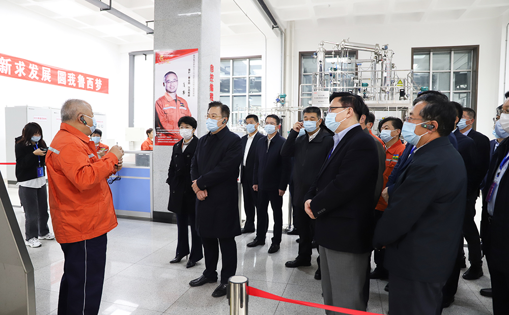 考察團(tuán)一行相繼參觀了魯西集團(tuán)化工產(chǎn)業(yè)園區(qū)氟硅材料裝置區(qū)、技術(shù)中心大樓實(shí)訓(xùn)基地和運(yùn)行指揮中心、資源供給區(qū)、化工工程功能區(qū)、轉(zhuǎn)型升級(jí)裝置區(qū)以及新材料產(chǎn)業(yè)區(qū)。在技術(shù)中心大樓重點(diǎn)參觀了實(shí)訓(xùn)基地,觀看了魯西集團(tuán)企業(yè)綜合發(fā)展情況匯報(bào)片,聽(tīng)取了張金成關(guān)于企業(yè)培訓(xùn)和近期整體運(yùn)行情況以及下一步發(fā)展規(guī)劃介紹。