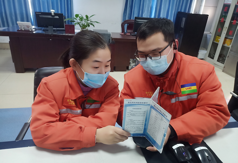 近日,在氯化芐事業(yè)部每個DCS崗位操作臺的一角都規(guī)整的擺放著一個類似相框的旋轉(zhuǎn)擺臺。調(diào)度龐玉奇正在向操作人員介紹著這個旋轉(zhuǎn)擺臺,“這就是咱們氯化鈣操作崗位的‘一崗三卡’擺臺,它分為三面,是可以旋轉(zhuǎn)查看的。三卡包含崗位物料MSDS卡、應急處置卡和安全風險卡。崗位物料MSDS是指本崗位的崗位物料知識及工藝指標要求;安全風險卡包含崗位危險因素知識;應急處置卡包含危險品應急處置程序。大家一定要掌握這些應知應會的基礎知識?!?nbsp;