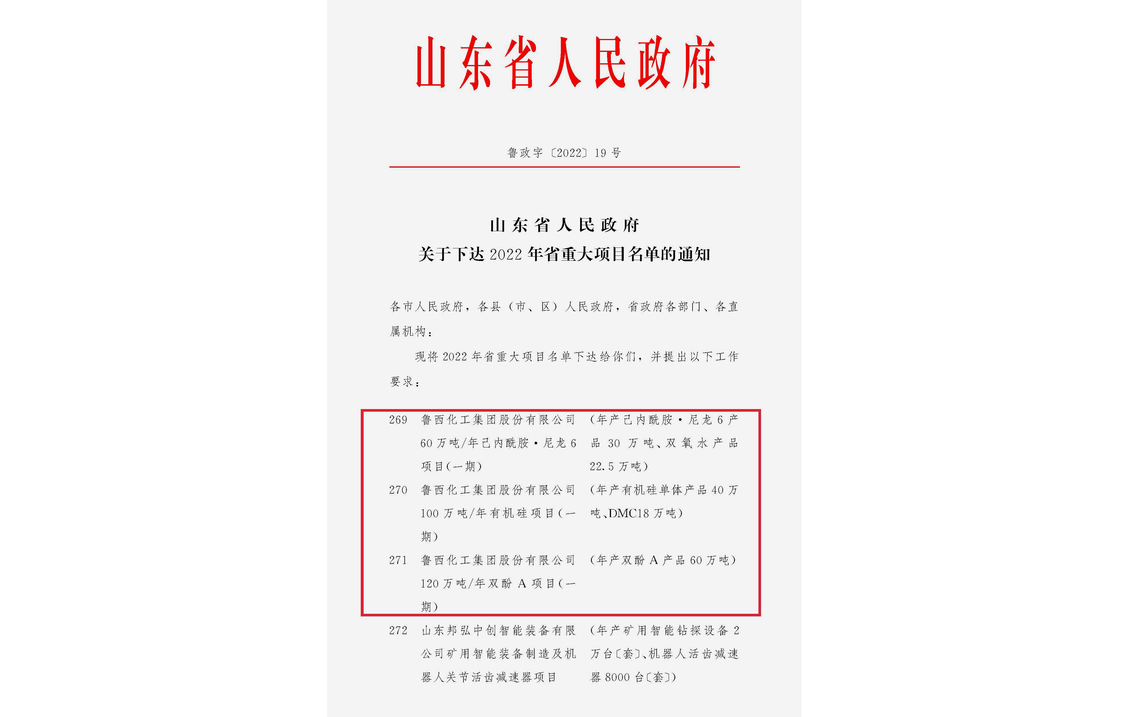 魯西集團(tuán)3個高端化工和化工新材料項目入選2022年山東省重大項目名單