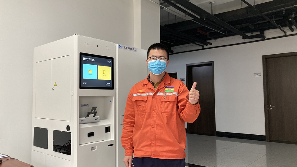 財務人員孟艷艷滿臉喜悅,她說:“我們財務原來專門設立單據(jù)接收、登記窗口,每天都會有各部門人員拿著單據(jù)來窗口辦理業(yè)務,我們要逐一和業(yè)務辦理人員溝通、做好臺賬登記,有時一天下來有大約160份單據(jù)進行處理,感覺工作量比較大?,F(xiàn)在不一樣啦,大家可以隨時通過智能收單機器人完成各類單據(jù)的快速投遞。財務檔案人員可以通過后臺管理系統(tǒng),根據(jù)實時掌握的收單機器中單據(jù)數(shù)量,集中安排時間收取單據(jù),時間成本管理效果很明顯?!?