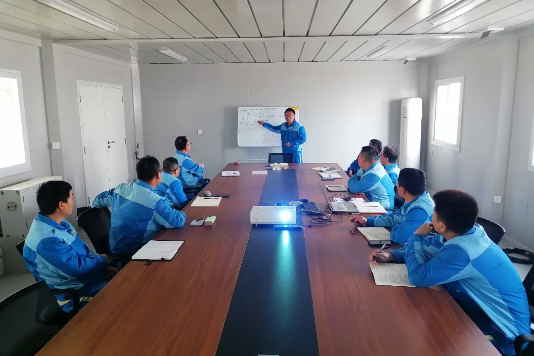 施工未展開,安全必先行。項(xiàng)目部建立常態(tài)化安全培訓(xùn)機(jī)制,在每天的安全課堂上,安全員帶領(lǐng)員工進(jìn)行“沉浸式”安全培訓(xùn),用真實(shí)事故案例制作VR模擬課件,讓施工人員在虛擬場景中感受違規(guī)操作的危害。培訓(xùn)后,施工人員需通過“理論+實(shí)操”的三方考核,才能上崗,確保“每個(gè)人過關(guān)才上崗”。每周結(jié)合現(xiàn)場工況開展定制化安全規(guī)范培訓(xùn),同步融入國際安全管理理念及發(fā)包方核心要求,動(dòng)態(tài)更新安全知識(shí)庫,確保團(tuán)隊(duì)實(shí)時(shí)掌握最新行業(yè)標(biāo)準(zhǔn)與技術(shù)規(guī)范。