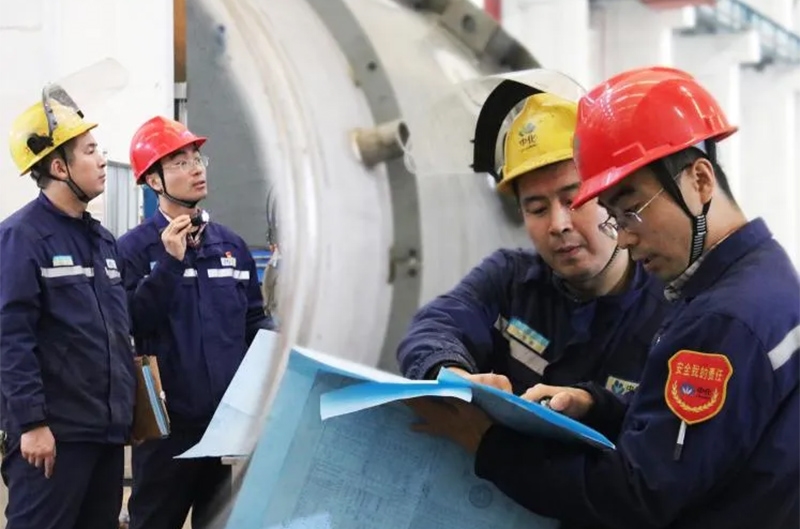 夏日的裝置區(qū)像個大火爐,師傅帶著我轉(zhuǎn)現(xiàn)場,指著管道設(shè)備講工藝流程和工作原理;深夜的操作臺前,我認(rèn)真記錄屏幕上的各種數(shù)據(jù),對比溫度、壓力、流量的變化規(guī)律;隨身攜帶的筆記本上,寫滿了許多復(fù)雜工況的判斷方法。是的,三個月前那個面對生產(chǎn)裝置手足無措的姑娘,現(xiàn)在能配合師傅完成交接班、運(yùn)行參數(shù)分析等工作,操作知識的掌握也從“知其然”邁向“知其所以然”。