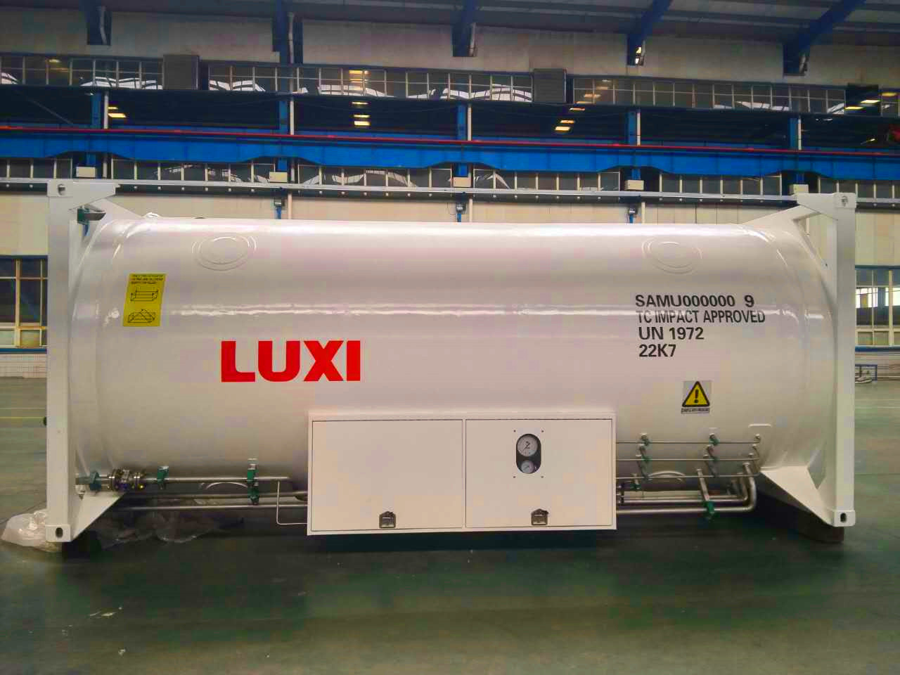 目前,魯西新能源裝備集團(tuán)制作的T75罐箱有兩種規(guī)格:20英尺、40英尺。該產(chǎn)品是由低溫冷凍液體儲罐、氣化器、管系、閥門等設(shè)備集中安裝至標(biāo)準(zhǔn)尺寸金屬框架內(nèi),嚴(yán)格執(zhí)行歐標(biāo)ADR、EN13530、CSC、IMDG等國際標(biāo)準(zhǔn)規(guī)范,主要用于充裝液化天然氣(LNG)、液氧(LO2)、液氮(LN2)、液氬(LAr)等低溫液體,可用于公路、鐵路及水路運輸。罐箱相對于槽車和儲罐,有無可比擬的經(jīng)濟(jì)、高效便捷、安全、美觀、環(huán)保等優(yōu)勢。罐箱的使用,不會有繁瑣而耗時的槽車與儲罐等倒運過程,可在公路、鐵路、水路之間直接轉(zhuǎn)換運輸方式,操作簡單快捷,一步到位,可謂真正做到“門到門”運輸。