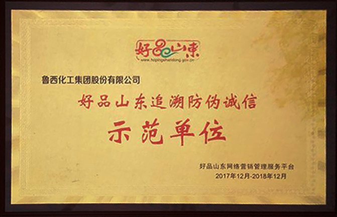 近日,魯西化工集團(tuán)股份有限公司榮獲“好品山東追溯防偽誠(chéng)信示范單位”稱號(hào)。