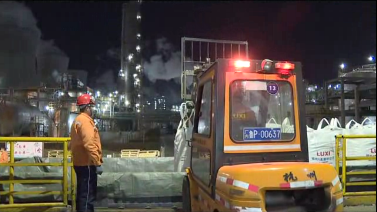 記者來到了魯西集團(tuán)化工新材料產(chǎn)業(yè)園錦綸6切片產(chǎn)品發(fā)貨區(qū),遠(yuǎn)遠(yuǎn)地看到提貨的車輛排起了長龍,裝貨叉車不停地在貨車與貨場之間穿梭,貨場內(nèi)外燈火通明,時(shí)間到了晚上的20:00,工作人員還在指揮著車輛有序裝車、稱量和離廠。