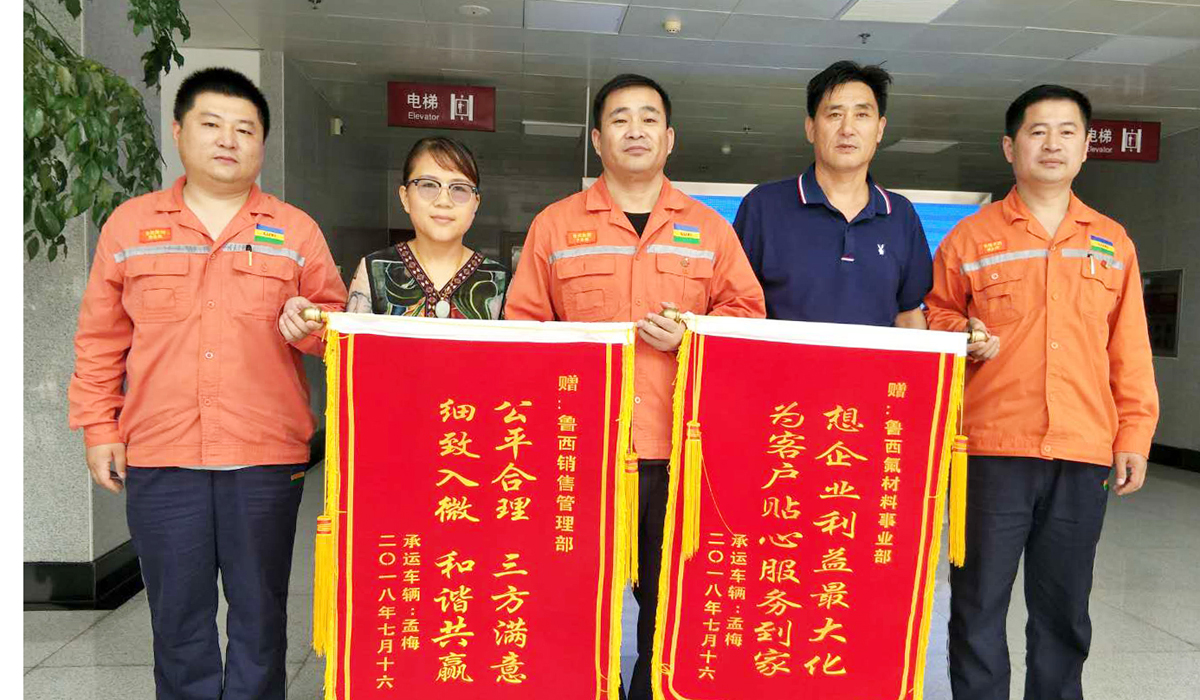 7月30日,東阿明鑫物流公司車輛負(fù)責(zé)人王長義、孟梅來到魯西集團(tuán),激動地將印有“公平合理 三方滿意 細(xì)致入微 和諧共贏”、“想企業(yè)利益最大化 為客戶貼心服務(wù)到家”字樣的兩面錦旗送到銷售管理部物流管理人員李登旭和氟材料事業(yè)部銷售經(jīng)理?xiàng)钕绕焓种?,連聲感謝。并向記者講述了一則魯西集團(tuán)員工公平公正妥善處理虧噸事件的故事。