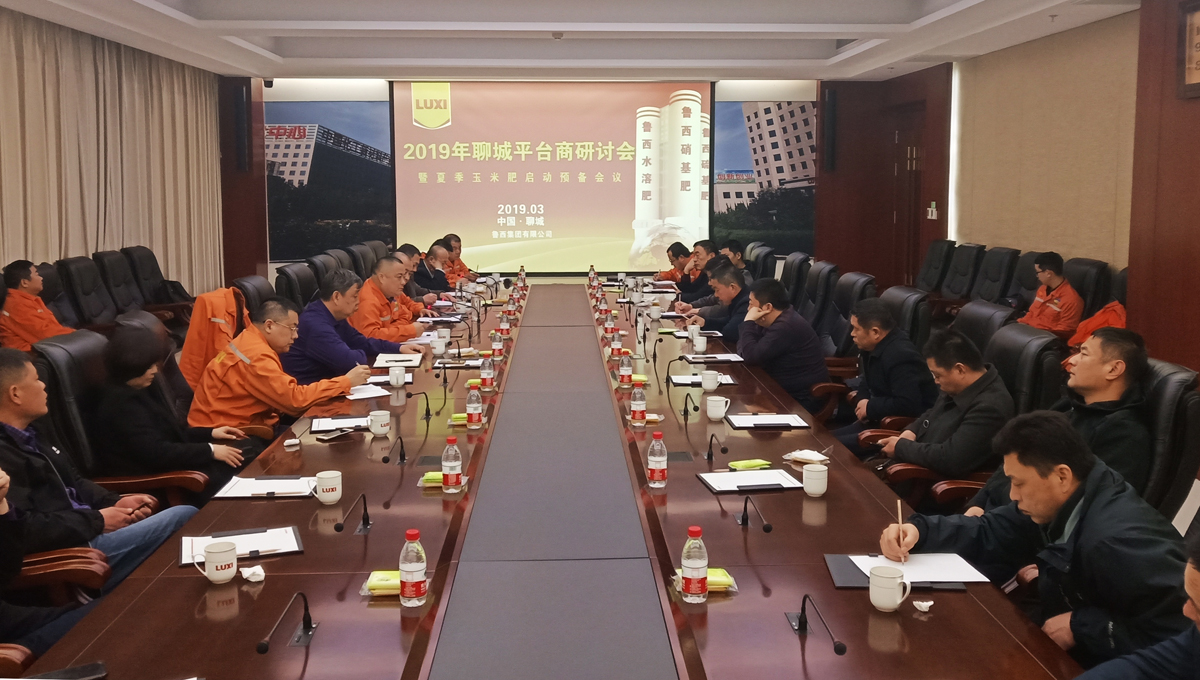 近日,2019年聊城平臺商研討會暨夏季玉米肥啟動預(yù)備會議在魯西集團召開,來自聊城八大縣區(qū)18名核心經(jīng)銷商參加了會議。魯西集團化肥事業(yè)部副部長王新昌主持會議。