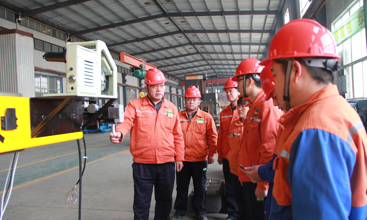 其后,黨支部張書記在制作廠房現(xiàn)場(chǎng)針對(duì)大型設(shè)備工具的使用,詳細(xì)講解了龍門焊機(jī)及組立機(jī)使用的基礎(chǔ)知識(shí)、十字大臂焊機(jī)的原理、應(yīng)用及預(yù)防措施。期間,張書記對(duì)大家提出的疑難問題進(jìn)行了解答。指出使用先進(jìn)自動(dòng)化設(shè)備、工具,一是提高了產(chǎn)品質(zhì)量和工作效率;二是降低了勞動(dòng)強(qiáng)度;三是減少了焊接產(chǎn)生的煙塵,改善了作業(yè)環(huán)境。并要求使用人員務(wù)必保證設(shè)備在良好的狀況下運(yùn)轉(zhuǎn),確保機(jī)器設(shè)備、工夾具等精度達(dá)到生產(chǎn)要求,確保產(chǎn)品“一次做到最好”。