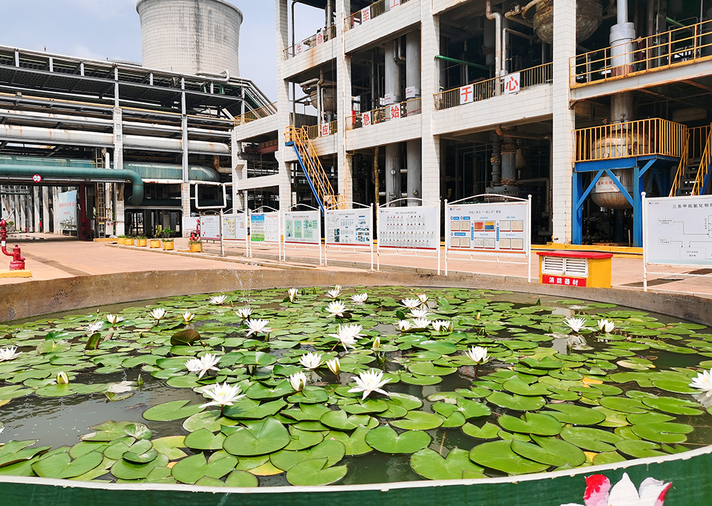 有人說“生產(chǎn)現(xiàn)場的面貌是生產(chǎn)運(yùn)行狀態(tài)的試金石?!闭\如所是,進(jìn)入魯西集團(tuán)氯甲烷事業(yè)部,在高大的生產(chǎn)框架之邊,首先映入眼簾的是一排排青翠欲滴的冬青、紅綠相間的石榴樹。還會(huì)發(fā)現(xiàn)三個(gè)2米方圓的大魚缸,里面有躍動(dòng)的噴泉、靈動(dòng)的金魚、青青的荷葉,還有潔白的荷花。員工在工作之余,撫葉賞荷,滿臉愜意??烧l知道,在幾年之前,這里可是現(xiàn)場治理的“老大難”,究竟是什么促使這一切的改變呢?